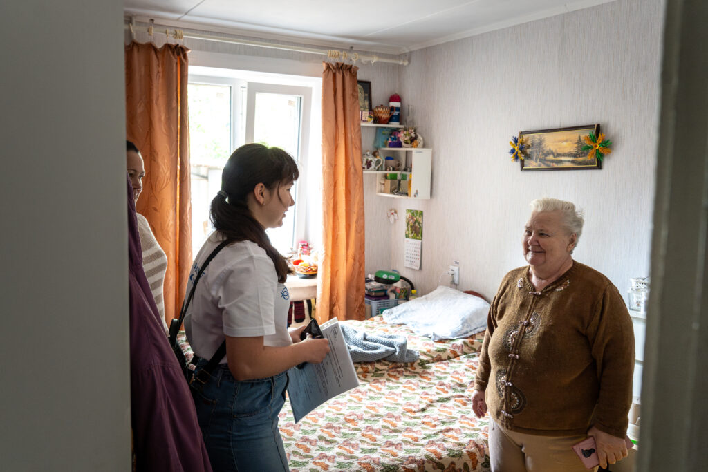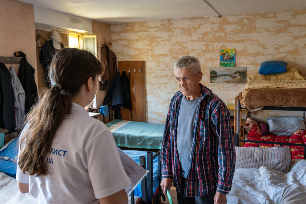 Mange af de mennesker, som Katia hjælper, er ukrainere på flugt i deres eget land. Tetiana og Liubov er begge fra byen Ochakiv og modtager støtte, der gør det muligt for dem at få adgang til medicin og besøge hospitalet, når det er nødvendigt.50-årige Anatolii pådrog sig flere alvorlige skader, herunder i maven, under et bombardement i Beryslav, Kherson. Han har fået hjælp til at få erstatning som internt fordreven, og Katia har også hjulpet ham med at få et betalingskort og taget Anatolii med til jobcentret.Anatolii bor i øjeblikket i et center for mennesker på flugt i deres eget land i Mykolaiv.“Mit arbejde er ikke nemt, men det tilfredsstiller mig, fordi jeg hver dag hjælper mennesker i nød. Min dag bliver fyldt med positivitet, når jeg er i stand til at hjælpe folk i nød og gøre deres liv bedre. Jeg nyder især at se glæden hos de mennesker, jeg har kunnet hjælpe ved at løse deres problemer. Nogle gange møder de mig med glædestårer,” siger Katia.Anna boede tidligere i Kherson, men er siden krigens udbrud flyttet til Mykolaiv. Katia hjælper hende med at komme på hospitalet. Tidligere har Katia hjulpet Anna med at få sine pensionsmidler og adgang til humanitær hjælp.Maria blev evakueret fra Kherson i begyndelsen af krigen. Hun bor i øjeblikket på Mykolaiv Geriatriske Center, hvor Katia kommer for at besøge hende. Maria har allerede mistet to børn før krigen, og nu har hun mistet sit hus i Kherson. Når Katia træder ind ad døren, liver hun op. “Det er så vidunderligt, når hun kommer,” siger Maria.“Deres smil, deres glæde og håb om en bedre fremtid, deres tro på en forbedret situation og forståelsen af, at de ikke er alene, ikke efterladt til at håndtere deres problemer på egen hånd, men altid kan regne med støtte fra vores organisation – det er den bedste belønning for mit arbejde,” siger Katia.
