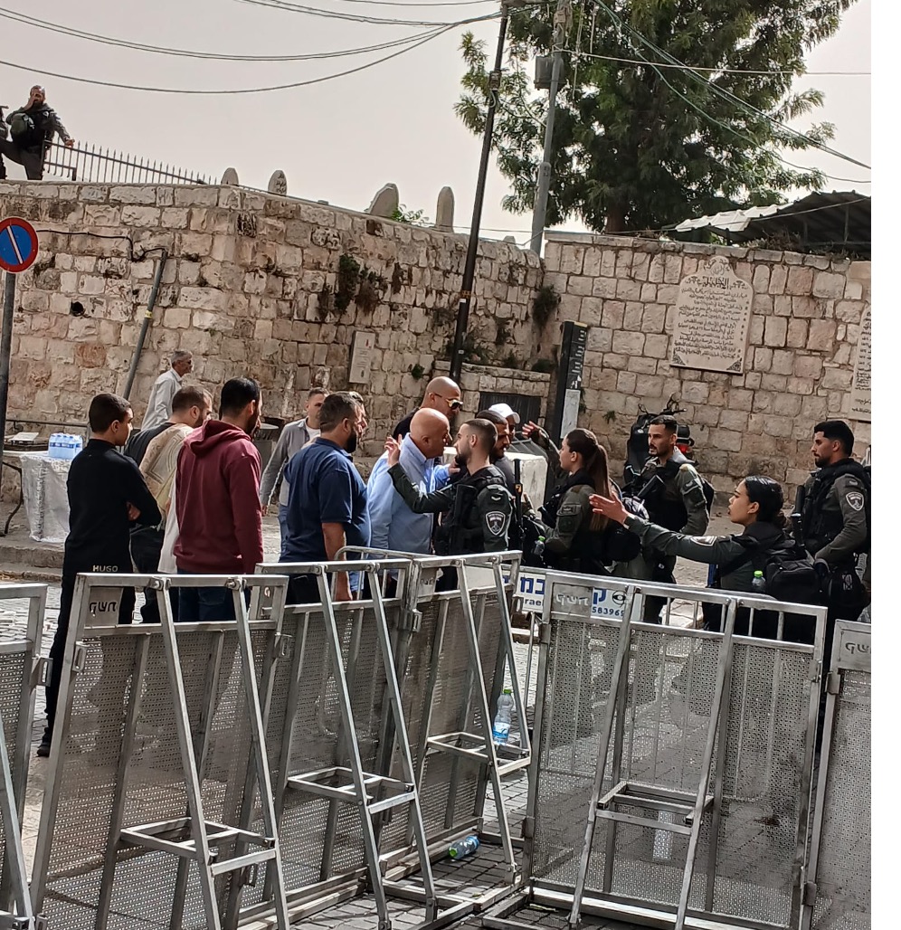Hver fredag møder israelske soldater og politi talstærkt op ved alle indgange til Al-Aqsa moskéen – og de står også parat ved portene til den gamle bydel, hvor man finder indgangene til moskéen. Omgivelserne omkring bønnen er derfor ekstremt militariseret. Den palæstinensiske menneskemængdes første møde på vej til bønnen var i dag 14 soldater.