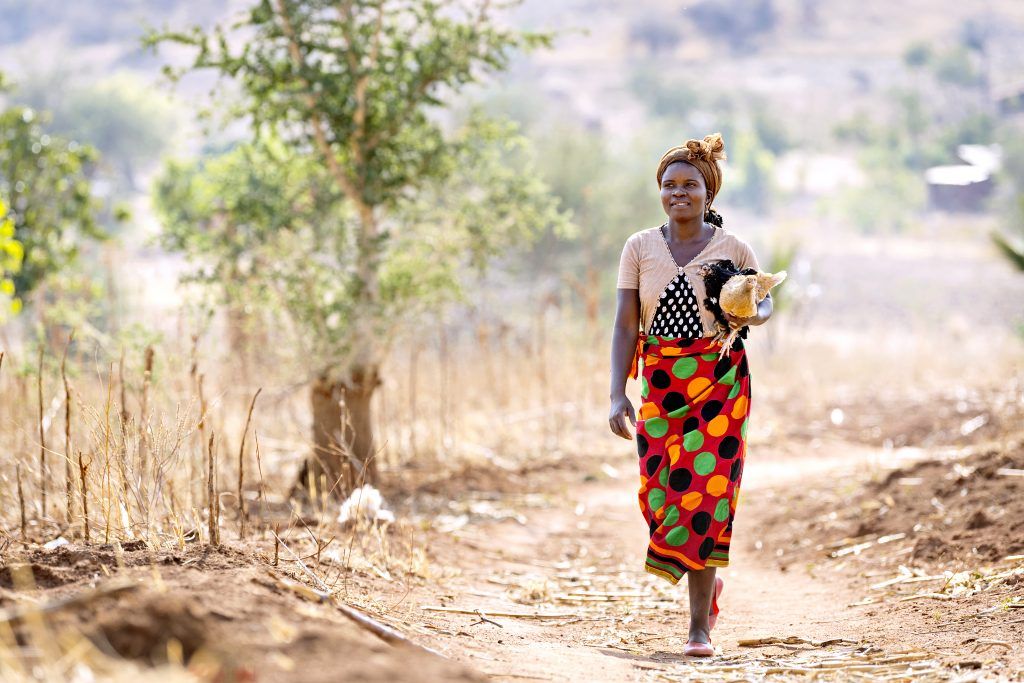I 2016 modtog Gertryde ti høns og en hane fra Folkekirkens Nødhjælp. Det blev livsændrende for Getrud, som nu kan mætte sine tre børn og sende dem i skole hver dag. Hun har allerede udvidet med to grise og køkkenhave gennem indtægterne fra salg af hønsene.