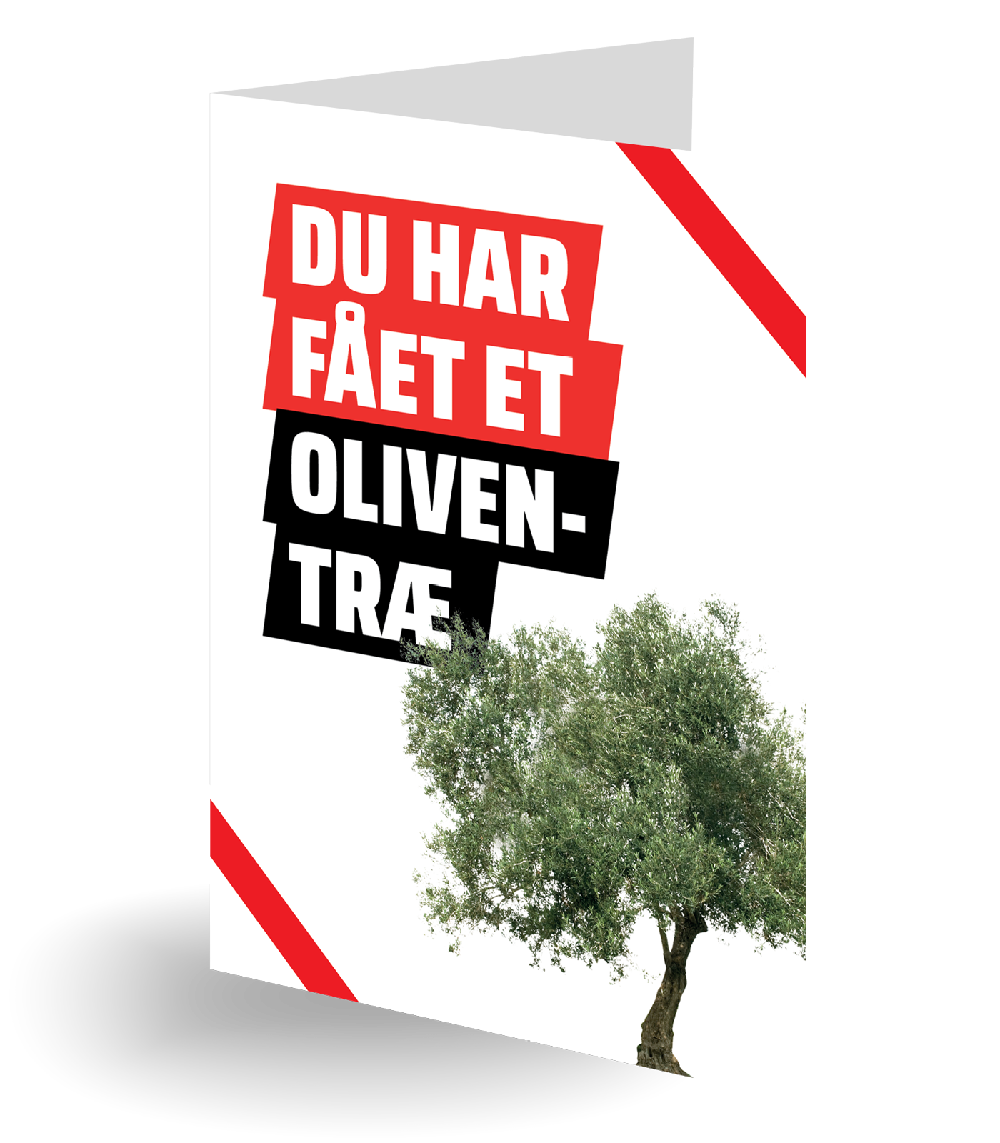 Når du køber et oliventræ som symbolsk gave, modtager du et gavebevis, som du kan give til en, du holder af. Dit køb fungerer som en donation til Folkekirkens Nødhjælps oliventræ-projekter i Palæstina på Vestbredden. Det er en gave med mening.