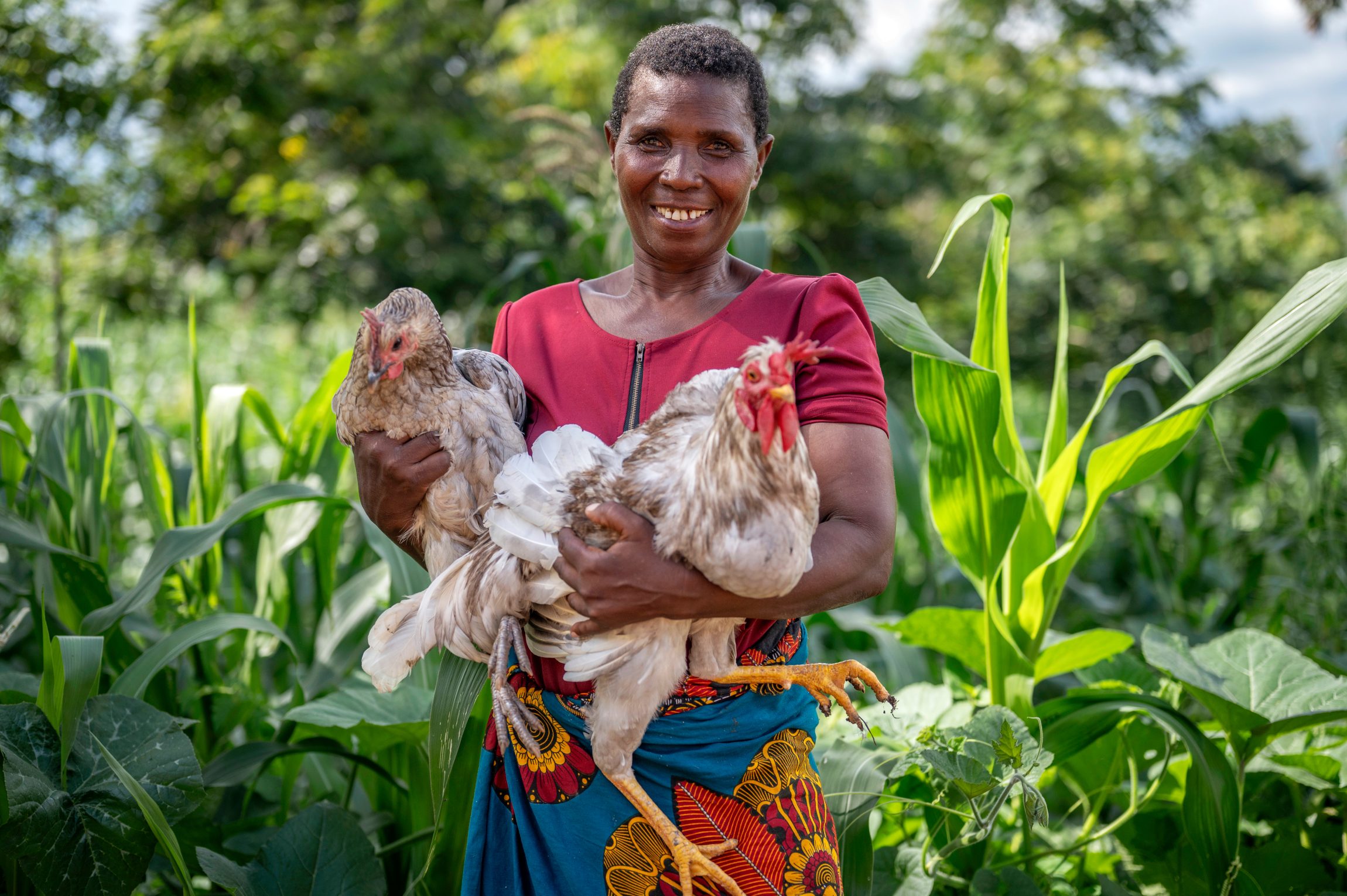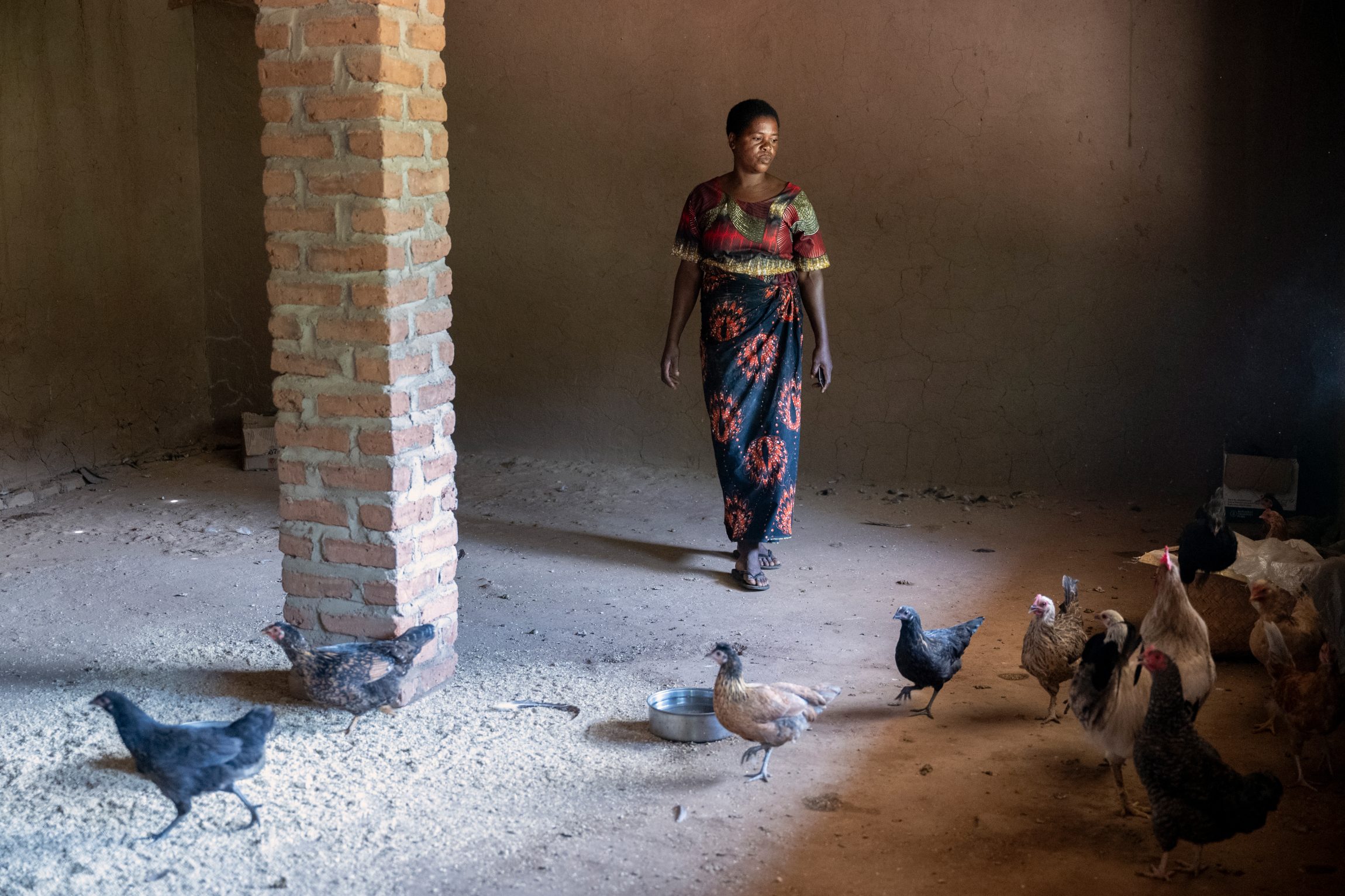 ”Før var det meget svært at skaffe nok penge, da jeg var nødt til at låne fra familiemedlemmer. Men kyllingerne og mit lille landbrug har ændret mit liv, så jeg nu er selvforsørgende og uafhængig af andres hjælp”Jessie Kumwenda modtog i 2018 kyllinger fra Folkekirkens Nødhjælp